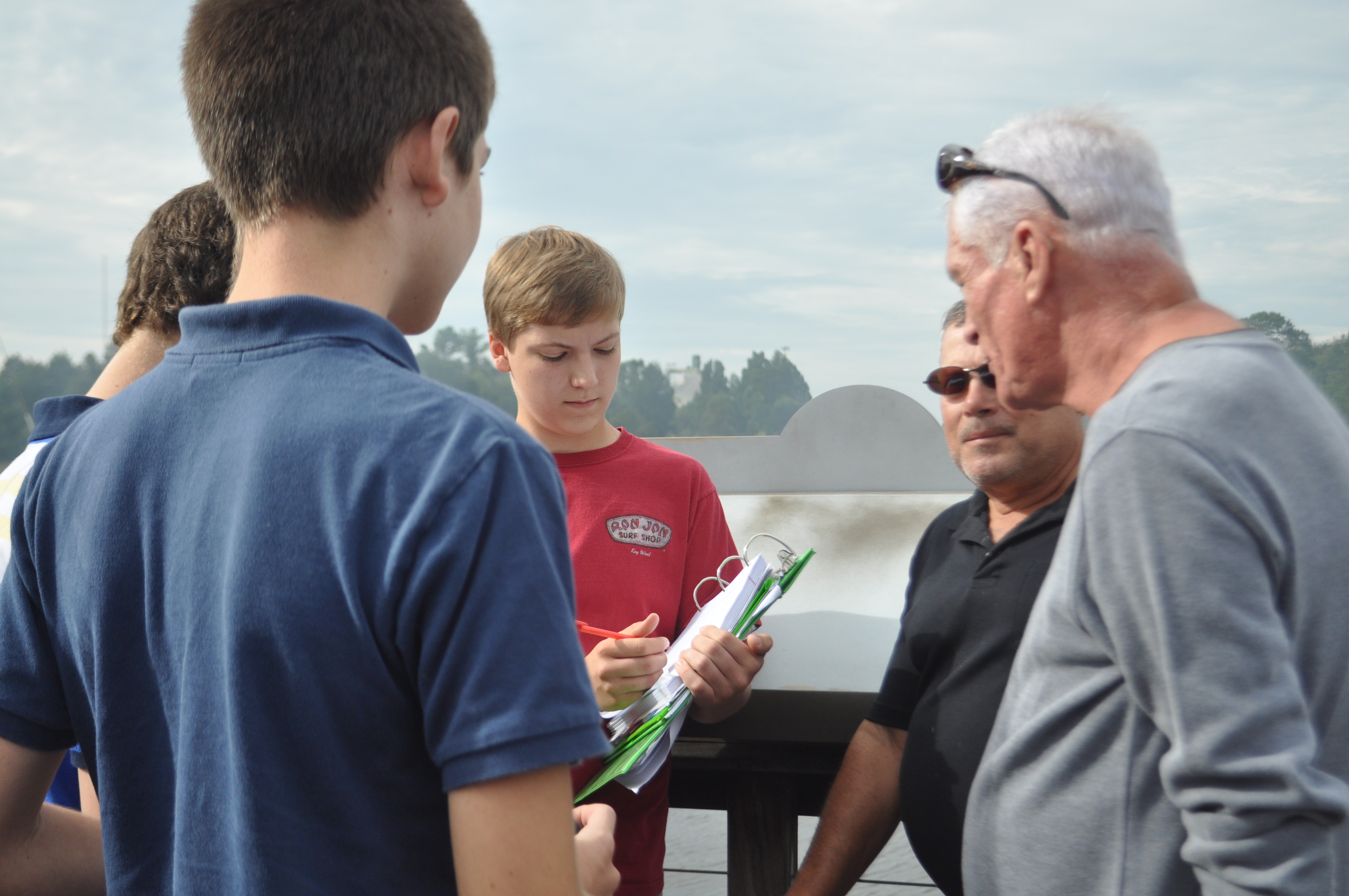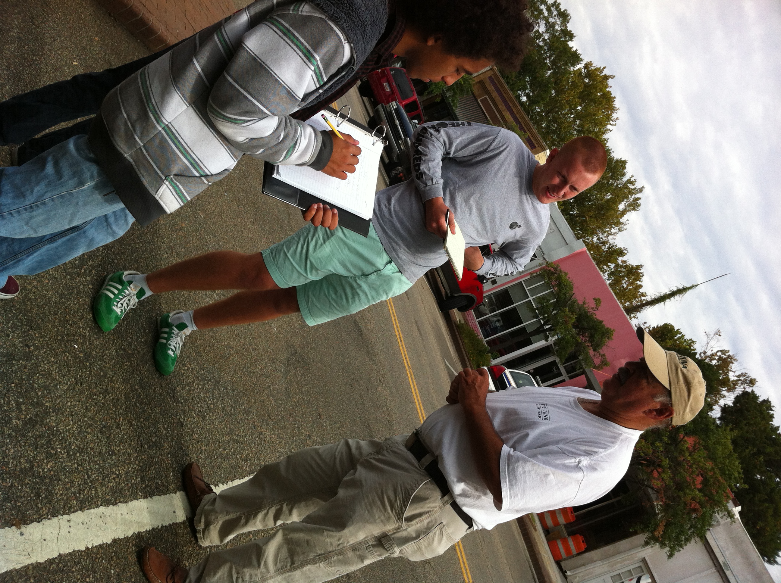 A tragic fire which destroyed almost the entire 700 block of Front Street riverside became a learning experience for The Georgetown School. Inspired by the Open Forum speaker this morning (Sept. 25), reporter Jason Lesley of The Coastal Observer, students and teachers walked down to Front Street to interview workers and bystanders, and to photograph the events. Mr. Lesley stressed the importance of providing information quickly and accurately to members of the community and got students enthused about investigating this particular story and helping people understand the terrible news. For most students, conducting an interview was a new experience.