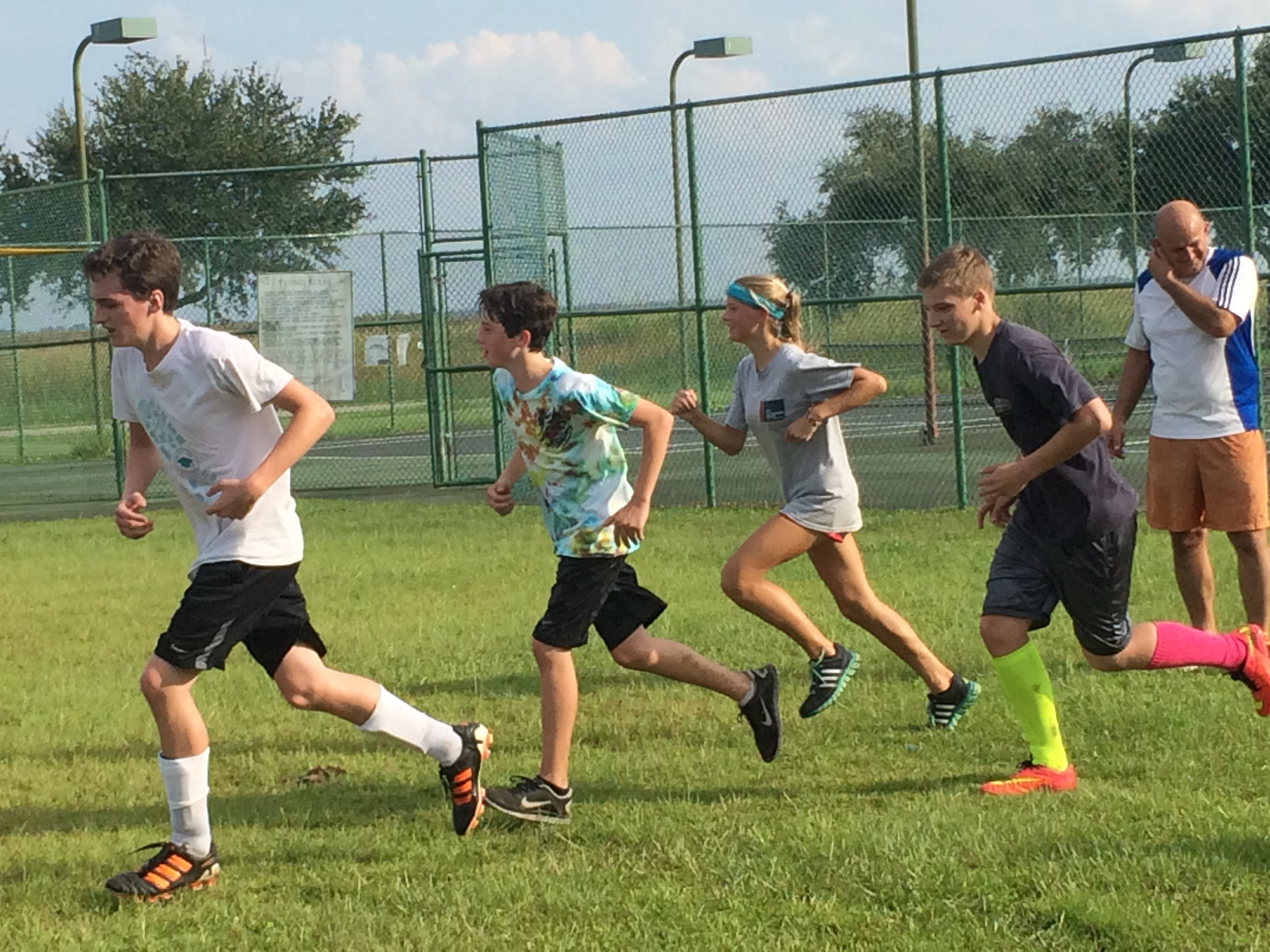 Fall sports conditioning began on the traditional date of August 1, with volleyball and soccer players meeting Dr. Gates at East Bay Park for stretches, sprints and strength/agility training. The kids report that it has been hot down there, but not as hot as last year. We hope that even more kids will come out for conditioning next week–participating in sports is the best way to build friendships and school spirit! The conditioning always ends with a short soccer scrimmage, so put on your running shoes and get down to East Bay Park on Monday and Tuesday (August 17-18) for some fun and fitness from 5:00-6:30. On Wednesday, the volleyball and soccer teams will begin regular practice right after school every day.