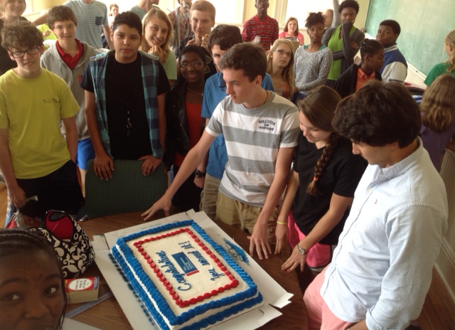 Wednesday, October 29 “Momma” Gates brought an amazingly large sheet cake with icing in our school colors to celebrate the victory. Everyone had blue lips and teeth there for awhile at lunch!