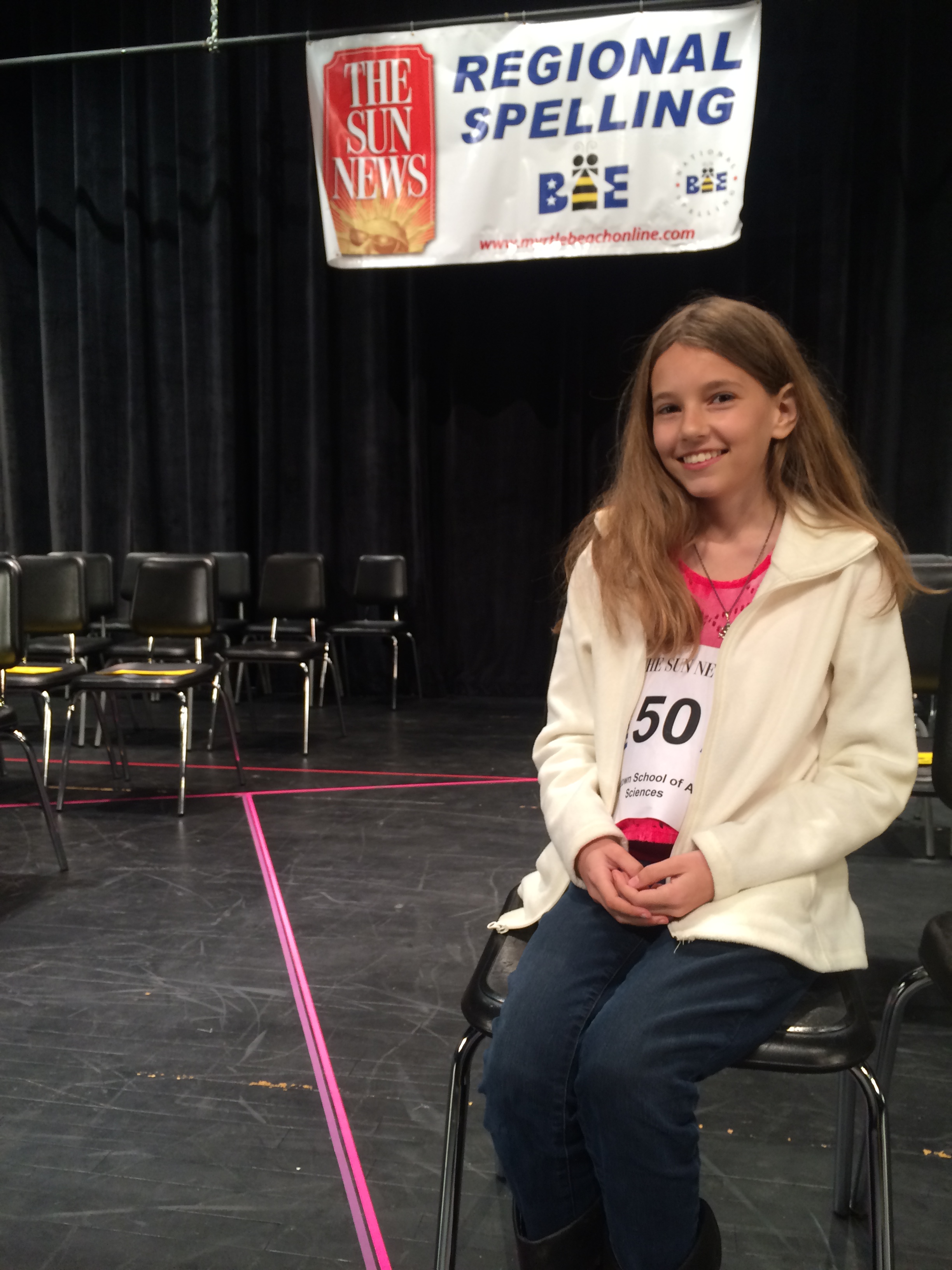 Ryleigh continued the fabulous Neubauer spellebrity tradition by placing third at the 27th annual Scripps-Howard Regional Spelling Bee, sponsored by the Myrtle Beach Sun News. The event was held on March 3 at Myrtle Beach High School and involved 54 elementary, intermediate and middle school students from Georgetown and Horry Counties.