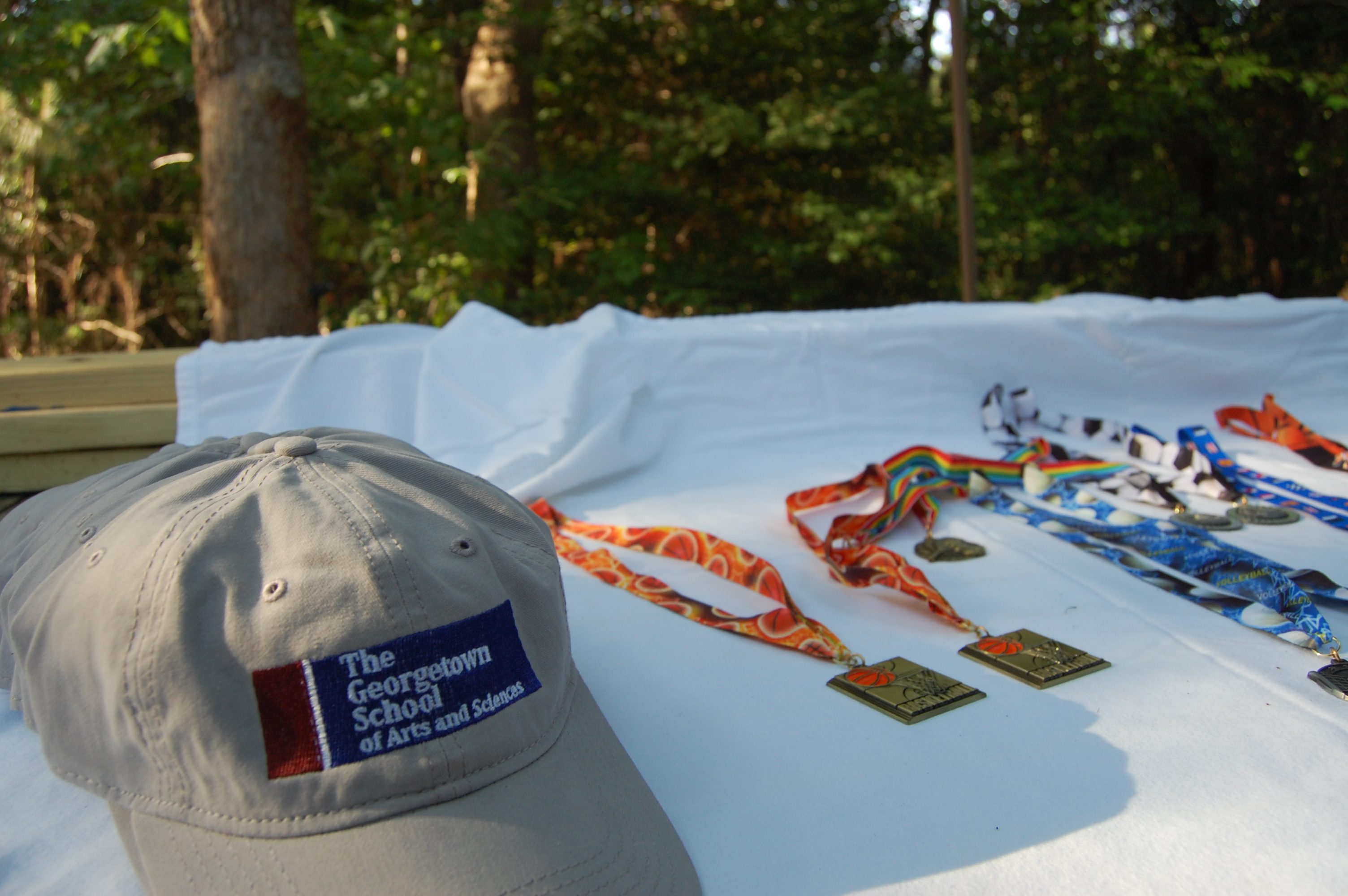 Kingfishers gathered at Hog Heaven on Sunday, May 17, to enjoy plates of barbecue, fried chicken and sides and to celebrate the sports teams of 2014-2015. Coach Gates coached track, volleyball, girls and boys basketball, boys soccer, and sailing while Mr. Patrick coached tennis. “There are no bench sitters in our sports program,” Coach Gates said. He also told the TGS families that the accreditation team for SCISA was very impressed that we had a a soccer team–they then found out we had six other sports besides! Sarah Exum was commended for her Regional All-Star award and Sarah Green for being the first TGS athlete to place in a SCISA competition (Track, 2014). All the athletes received awesome TGS caps, and MVP and Coach’s Award were given, respectively, to: Volleyball: Lizzy Culliton/Lochlyn Hejl; Girls Basketball: Savanna Morris/Elizabeth Exum; Boys Basketball: Grayson Sossamon/Josh Haas; Boys Soccer: Nathan Gates/Joe Skerman; Sailing: Savanna Morris/Isabella Neubauer; Tennis: Douglas DeVito/Lochlyn Hejl. Congratulations to all the players!