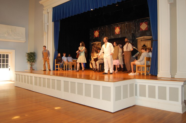 The American Shakespeare Center blazed into the Winyah Auditorium Thursday, January 30, and completely enchanted us with their rollicking performance of A Midsummer Night’s Dream. About 300 area students from GMS, MBMS, and Coastal Carolina took their seats as the actors warmed up the house with live music featuring bass fiddle, guitar, saxophone, percussion, and voice. Eight lucky students got to sit on stage with the actors, a convention from Shakespeare’s day. With all the lights on, we enjoyed a far-fetched scenario of nobles, fairies, and laborers by actors who were not afraid to get physical. Puck (Maddie Calais) and Bottom (Topher Embrey) particularly surprised and delighted the crowd with their antics. “You guys laughed at all the right places,” Maddie told us later. “You are a great audience.”