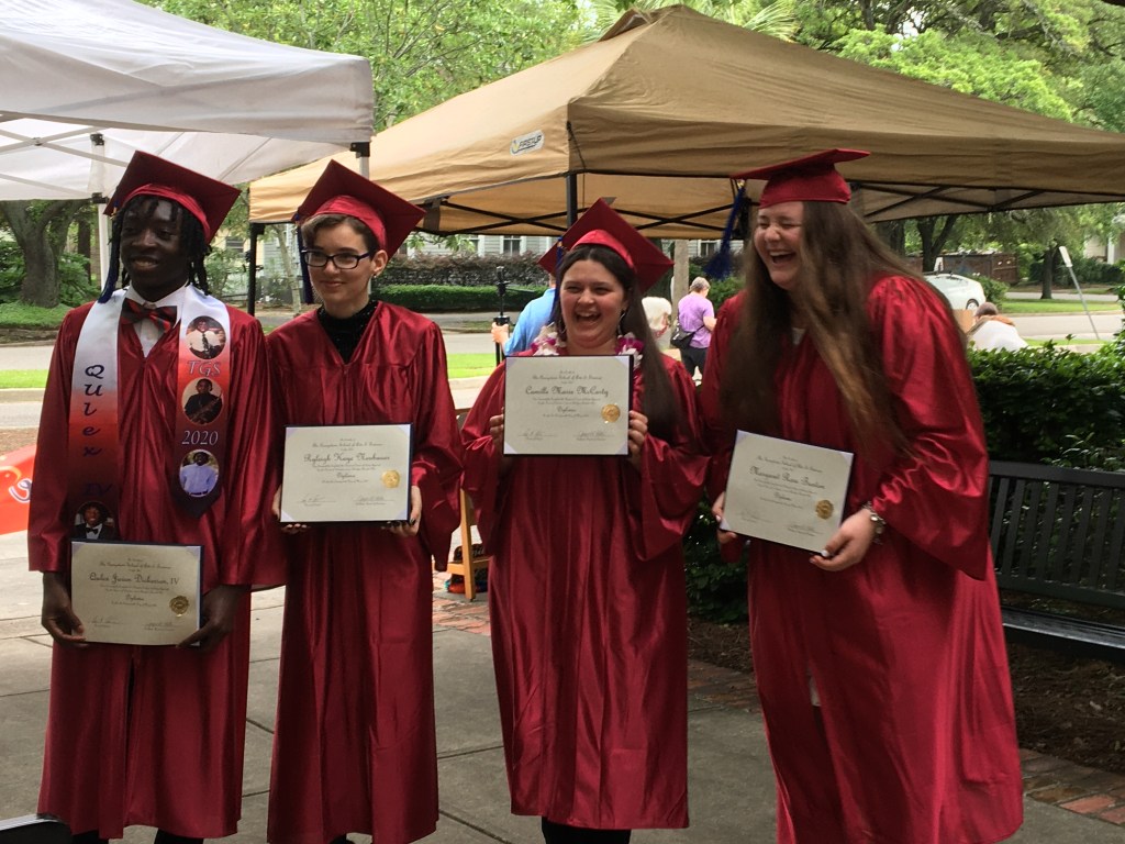 On May 29, The Georgetown School hosted its seventh commencement ceremony for our four seniors, faculty, and a few family members and friends. The atmosphere was different, with everyone seated separately in the rows of the Winyah Auditorium, masks covering their faces. But the same joy was there as we celebrated the crowning success of Margaret, Qulex, Camille, and Ryleigh.