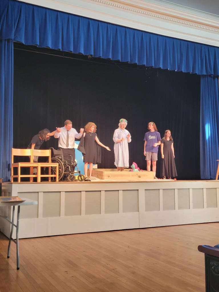 Finally, TGS’s High School put on The Sandbox, an early work by Edward Albee. In an ambiguous space that is alternatively beach, sandbox, stage, and coffin, Mommy (Kelsi Forrester) and Daddy (Ethan Anderson) bring Grandma (Sage Fairclough) to meet the Young Man (Isaac Shumard) who turns out to be the Angel of Death.