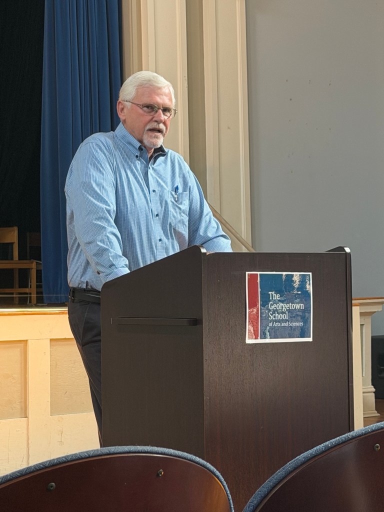 Mayor Doyle explained how his goals are to preserve Georgetown’s historical aspects, protect the surrounding woodlands while rezoning, and to provide employment for citizens (especially those impacted by our two mills’ closing). “Urban planning is a huge part of what I’m accomplishing,” he said while discussing his focus on development and where to construct new establishments. He invited students to contribute to his plan by coming up with their own ideas and plans for open areas in Georgetown.