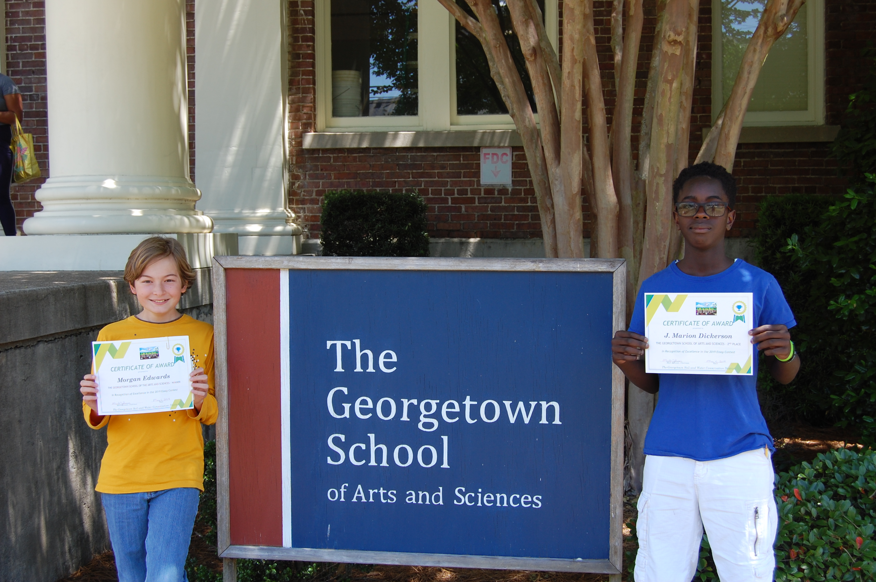 Congratulations to Morgan and J’Marion for placing 1st and 2nd place for The Georgetown School in the 2019 Georgetown Soil and Water Conservation District Essay Contest. The essay contest is open to all sixth-graders in Georgetown County and features cash prizes of $50 for each first-place winner and $25 to each second-place winner in all eligible schools.