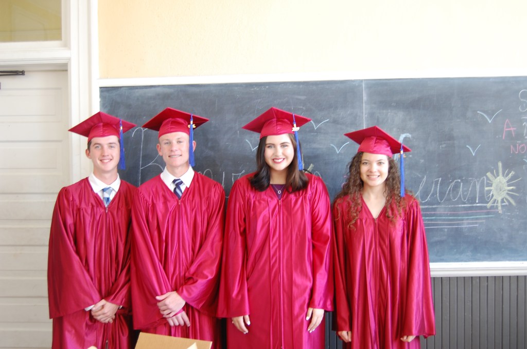 The crowd rushed down to congratulate the newly graduated students and celebrate with a reception in the hall. The Class of 2019 is composed of Brynn (University of S. C.), Grayson (Coastal Carolina University), Cathryn (Flagler University), and (Xavier University).
