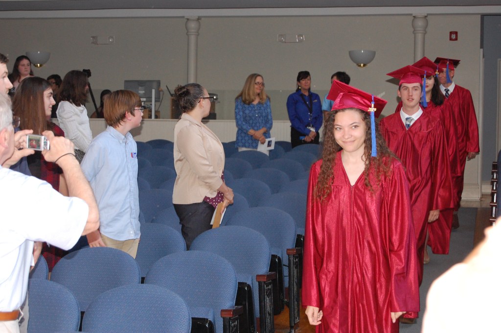Finally Dr. Gary Gates called the roll of graduates, who came forward to receive their diplomas and stand beside him. The crowd saw a mixture of emotion on their faces and tears in their eyes. Dr. Gates thanked each graduate for his or her special contribution to the culture of the school and congratulated them on their fine achievement.