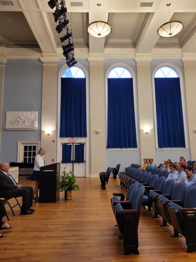 Dr. Gates began by announcing the names of all the students who won outside awards this year and they all received a warm recognition. “We go up against schools many times our size,” he said, “and regularly come back with awards.” He also noted that our students often garner compliments for how well they conduct themselves at events.